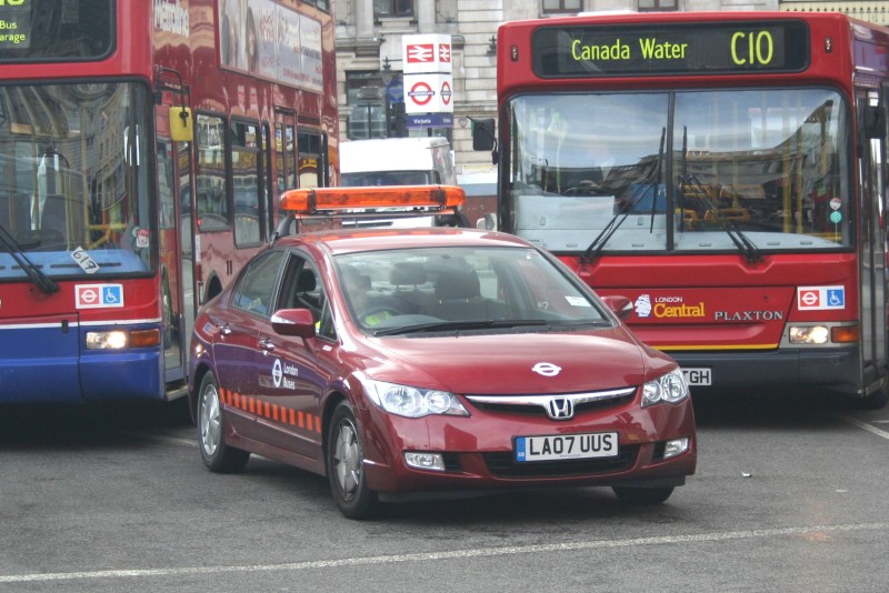 | Details: Honda Civic 6305H works for London Buses and is one of at least 14 of these hybrid drive cars leased in summer 2007. It was seen at Victoria Bus Station in late September. | |||