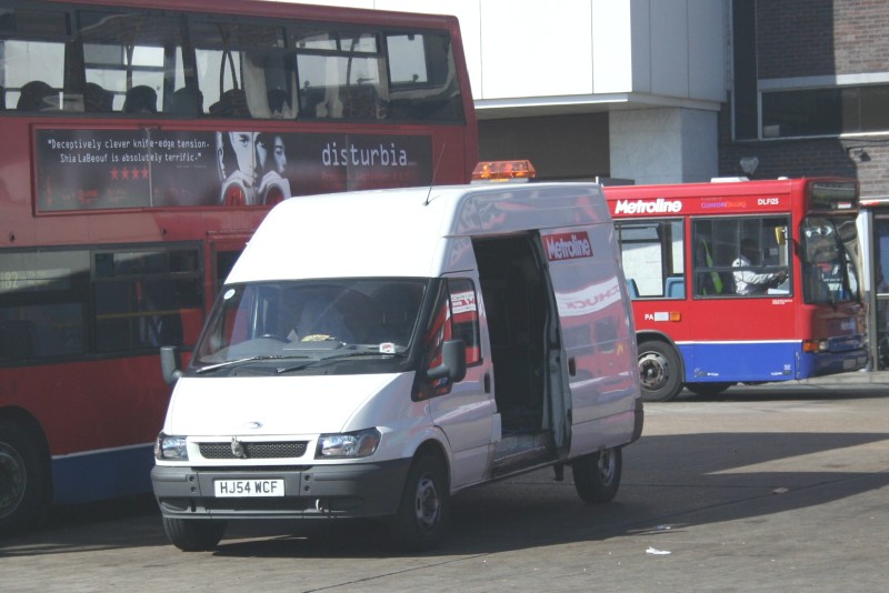 | Details: Although bought new in 2004, Metroline high-roof Ford Transit van HJ54WCF has proved to be very elusive. Scott found it at Brent Cross bus station in September 2007. The rabbit on the radiator is well stuffed! | |||