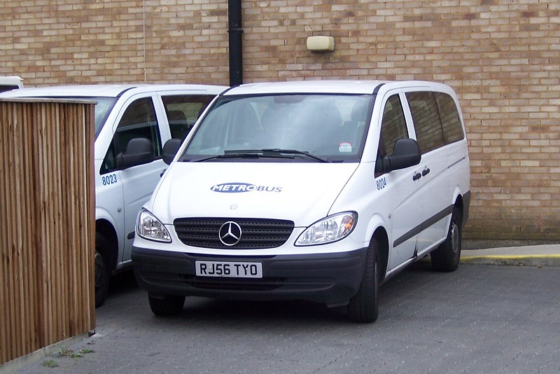 | Details: Metrobus 8024 and partially hidden 8023 are both Mercedes-Benz Vito minibuses, acquired in late 2006. They were photographed at Croydon garage on 28th September 2007. | ||||