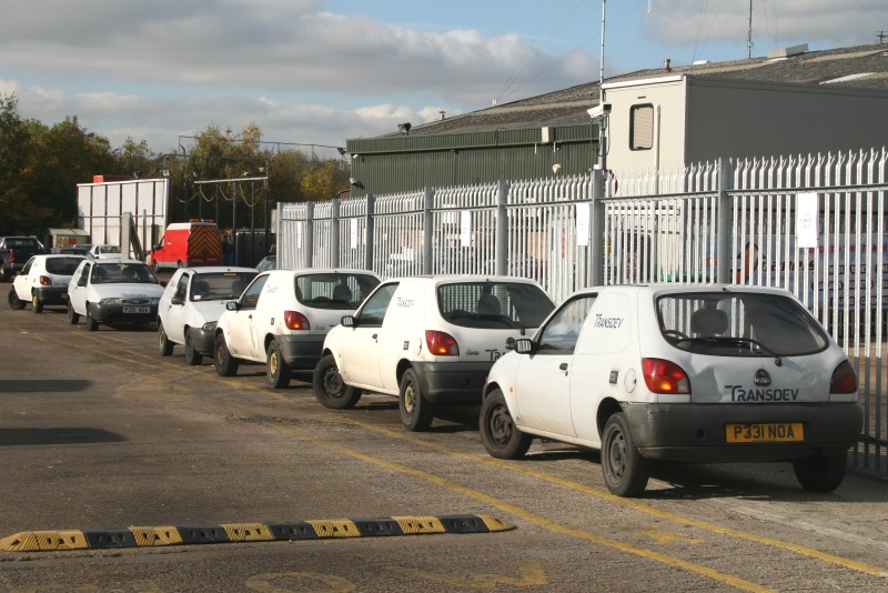 | Details: Pictures of Transdev's crew ferry vans at Hatton Cross are quite common on this site, so here for a change is a whole gaggle of them at the other end of their 'route', Hounslow Heath garage. All are Ford Fiesta vans that are thought to have been acquired from BT, and most carry fleetnumbers in their windscreens. One of the high-roof Transit vans (thought to be S169TOC) is also visible in the background. 2nd November 2007. | ||||