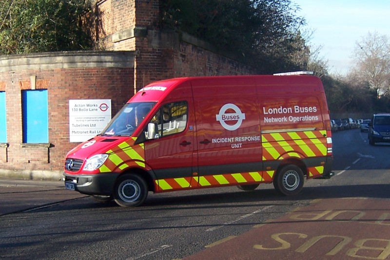 | Details: Ray caught this rather dazzling van running in to Acton Works on trade plates on 12th December 2007. WN57DRO is a Mercedes-Benz Sprinter van that was first licensed on this date. The livery is a new development and it remains to be seen if it is a one-off. Note the low-profile light-bar mounted at the rear. | |||