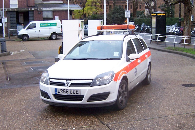 | Details: The TfL Streets fleet of cars are very noticeable as they go about their business, being painted in police-like livery and usually having light-bars and chevron rears. Included are several Vauxhall Astra estates such as LR56OCE, seen here on the petrol station at the back of Victoria Coach Station on 6th December 2007. | |||