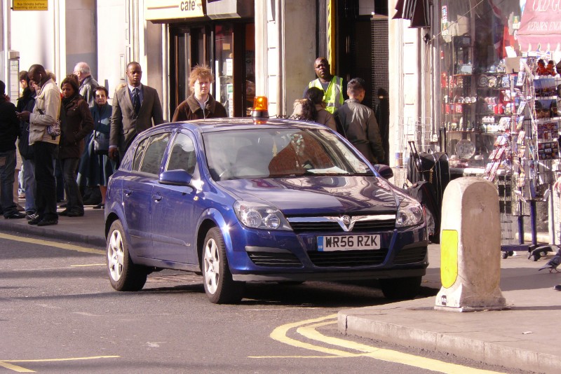 | Details: Almex has a contract to maintain the roadside bus ticket machines, and initially fulfilled this role with a fleet of lettered silver Ford Focus estates like AV03XYW. Since then they have taken a number of unlettered Vauxhall Astra cars in a range of dealer stock colours. Clues as to the vehicles identity include removable roof beacons, signs in the windows, and the locations that they can be seen parked in. Showing all three features is blue Astra WR56RZK seen at Victoria Bus Station on 26th February 2008. | |||