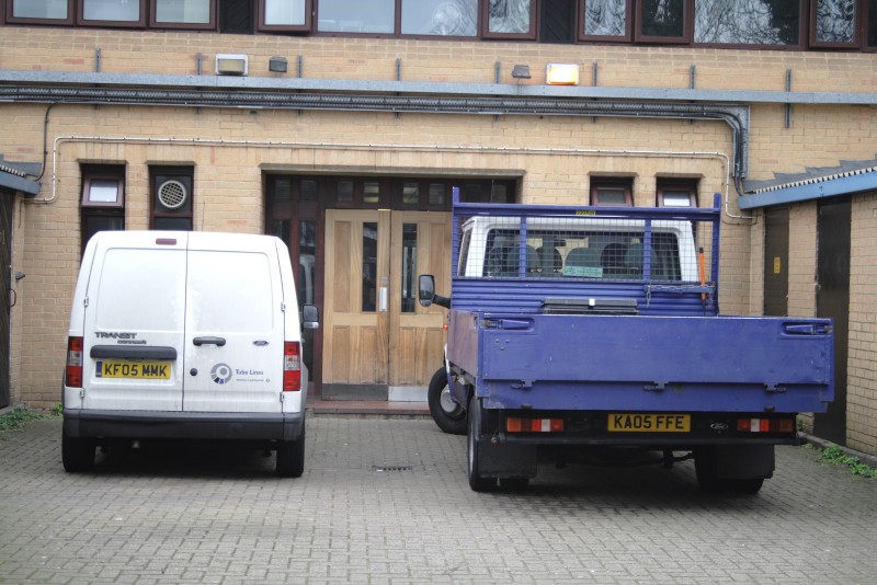 | Details: Visitors to the Museum Depot at Acton will recognise this as the building you pass on the walk from the station. I have included this picture, taken on the 8th March 2008, as it shows previously unillustrated Transit Connect 5747F and also the rear of a non-tail-lift-fitted Transit dropside truck. | |||||