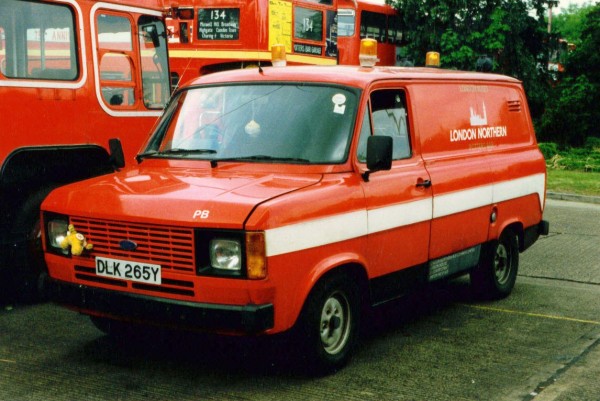 | Details: The Leaside division of London Buses was a pioneer in the use of non-CDS service vehicles, although restructuring in 1988/89 dispersed these among the London Northern and Metroline units. Ford Transit van DLK265Y was allocated to Potters Bar garage and passed therefore to London Northern. The van is carrying the short-lived Leaside bus livery of red with a thick black skirt and white waist band. Note that the PB code of the home garage has been applied to the bonnet, while the revised legal lettering is on a panel designed to match the post 1989 grey-skirt bus livery. | ||||
