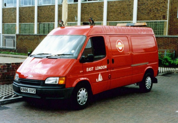 | Details: Another CDS vehicle which carried the logo of one of the new bus operating units was this long wheelbase Ford Transit van numbered 4217F (K886XVS). Leased in 1993 it was one of three allocated to bus garages in East London territory, in this case Barking. 3rd August 1993. | |||