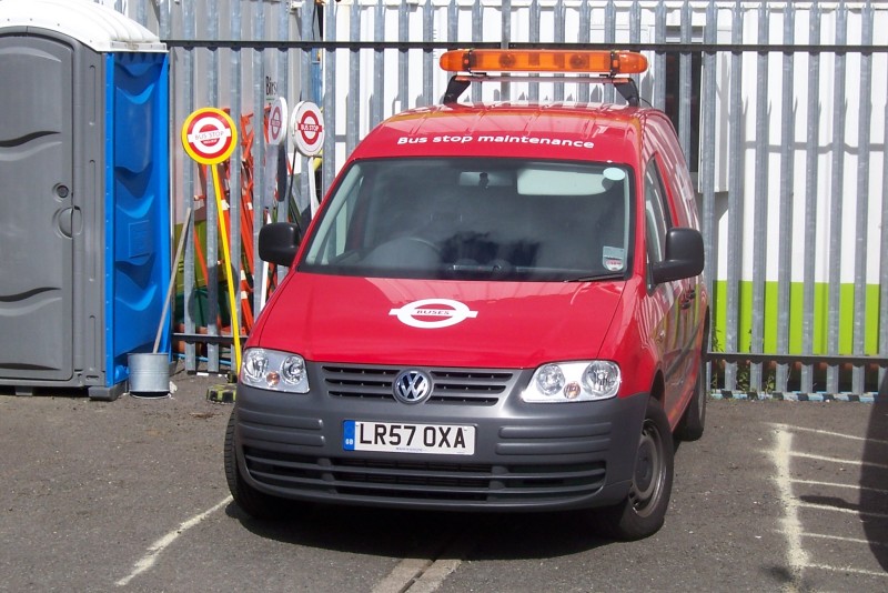 | Details: This van (or one very similar) was first seen back in December 2007, but it was not identified until a couple of sightings in August 2008. LR57OXA is a Volkswagen Caddy van in full LBSL livery (red with orange squares along the sides and yellow/red chevrons on the rear). It carries a light-bar and lettering for Infrastructure Development. It was photographed in the compound behind Orpington Bus Station on 14th August 2008. | ||||