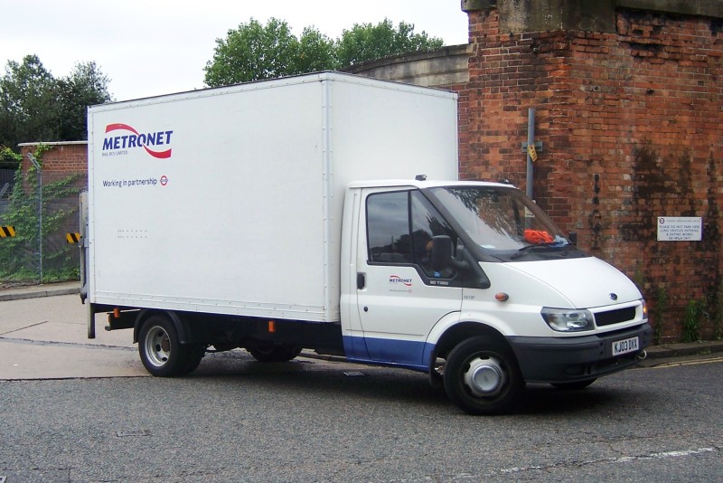 | Details: I was surprised to see that this vehicle was still in use. The sole Ford Transit box van in the central fleet, 5519F used to be parked alongside Frank Pick House at Acton but then must have been moved elsewhere. On 12th September 2008, Ray caught it leaving Acton Works. It also unusual for retaining full Metronet logos, i.e. still with the reference to BCV. | ||||