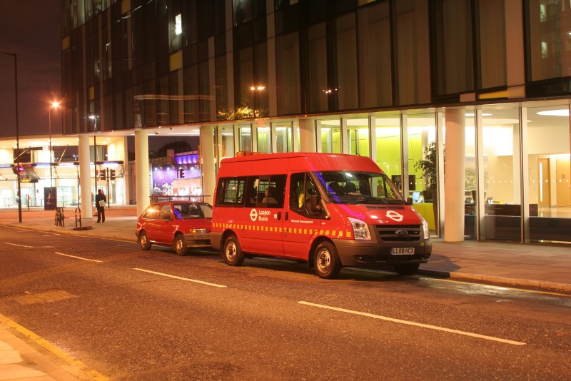 | Details: Another fine view of Passenger Data Ford Transit minibus 6498F shows it parked near Southwark tube on the evening of 6th October 2008. The building to the right is the Palestra, into which the TfL customer relations department recently moved. | ||||