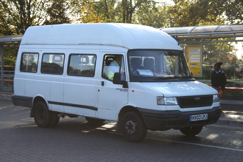 | Details: Here is another vehicle that has been illustrated before but has reappeared for a reason. The lighting of this shot taken at Crystal Palace bus station on 16th October 2008 reveals some of the former lettering. Unlike the many Travel London that originate with the Royal Mail, this LDV Convoy minibus was apparently latterly used by Bob Thompson (front) small group travel (side). | |||