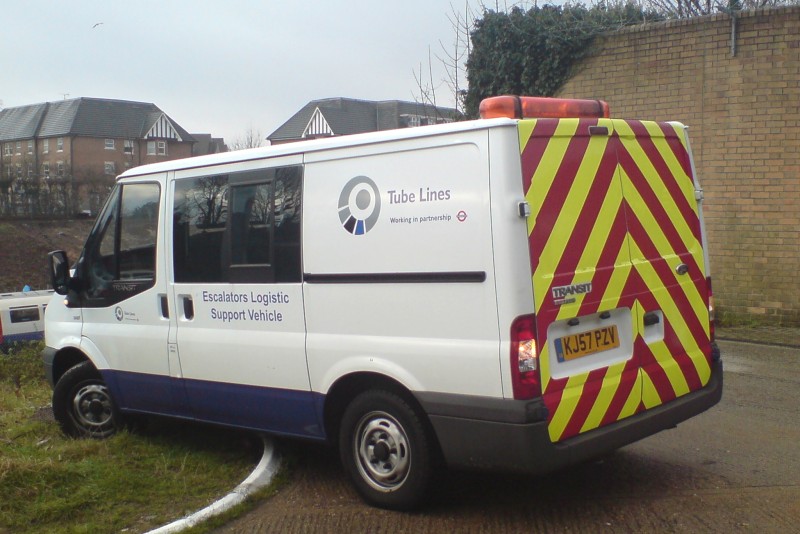 | Details: Escalators Logistic Support Vehicle 6489F was found on Museum Approach at Acton Town on 3rd December 2008. This Ford Transit crew van is one of relatively few white/blue liveried vans to have a light-bar. | ||||