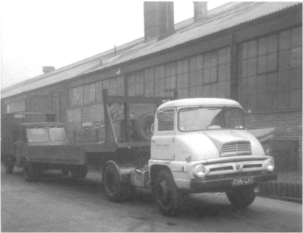 | Details: At Parsons Green in 1964 is 1226Fpm (206CXK), a Thames Trader, coupled to YT13 step-frame trailer. An Austin LDO1 half tilt (990AS or 991AS) is behind. | |||||