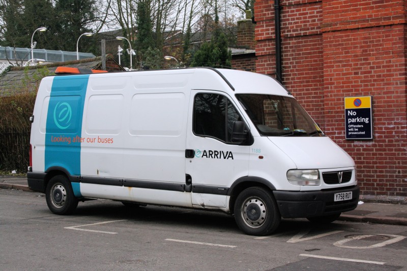 | Details: Since London Buses got rid of their baker's dozen in the mid-2000s, there have not been very many Vauxhall Movano vans used as service vehicles. In the central fleet there is one each with Tube Lines, the LT Museum and the LBSL Technical Services Group. Travel London had four used as crew ferries but these have not been reported for a while. The only other bus company user is Arriva the Shires with three, based at Stevenage, Garston and Harlow. Fleetnumber 1188 is the one at Harlow and it was seen at Epping Station on 15th December 2008, attending to a poorly Volvo B6BLE. It carries the national standard livery of white with a blue sash and quaint 'Looking after our buses' slogan. | |||