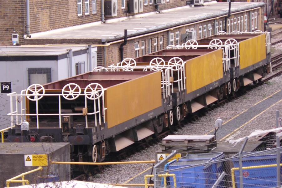 | Details: The recent extension of this website to include rail stock will cover wagons as well as locos and units. Seen at Lillie Bridge depot on 3rd March 2009 were a trio of ballast hopper wagons, with HW221 nearest the camera. Twenty-two of these 30ton capacity wagons were built by W H Davis of Shirebrook in 1981. The Gloucester bogies have brake control hand-wheels, while three wheels at each end of the wagons control the discharge chutes between and to either side of the rails. The slab sides of the hoppers originally had London Transport lettering, later replaced by Underground, but they are now plain. | |||
