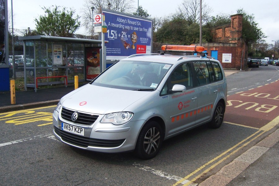 | Details: To replace their four VW Golf estate cars, the Infrastructure Development ('Stops and shelters') section of London Buses took delivery of four silver cars in late 2007. Two were VW Tourans but it was not until spring 2009 that we were able to confirm the identity of the second of the pair as being 6398VW. This has been seen in the Wembley area but, when seen on 27th March 2009, it had been paying a brief visit to Acton Works. The other Touran is South-East London based 6397VW. | |||