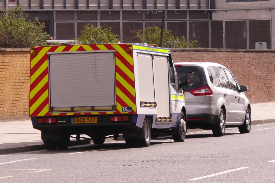 | Details: Another shot of Ford Transit 6516F at White City Station on 27th March 2009 shows the unusual body fitted. As the label on the rear shows, this was built by JDC (John Dennis Conversions), the same firm that did some work on the Mercedes Atego ERU tenders. The lettering on the side stripe reads 'Rapid Response Vehicle' and the vehicle is used by the Metronet P&D Operations Manager based at Griffith House. P is pumps, anyone know what the D stands for? Rather stupidly I forgot to note the ID of the Ford Galaxy car that parked itself in front, although it would appear to be an unlettered example. | |||
