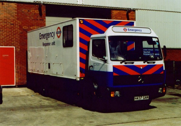 | Details: Emergency Response Unit vehicles carry conspicuous liveries and are often outstationed at satellite bases to enable more rapid access to any incidents. Seen at the Vauxhall depot is 2495M, a Mercedes-Benz 814 demountable truck bought in 1990 and used until 1999. | ||||