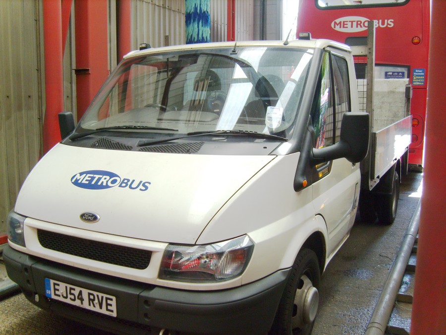 | Details: The most elusive service vehicle in the Metrobus fleet is probably Ford Transit dropside truck EJ54RVE (the allocated fleetnumber of 9014 does not appear to be carried). Nominally allocated to the engineering base at Lagoon Road it can just as often (or just as rarely!) be found at the main Orpington Garage. When John visited the latter on 17th May 2009 he found the trucked parked in the bus wash, making photography difficult. Note the tail-lift. | |||