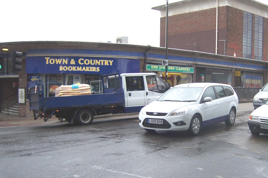 | Details: A lucky snap at Acton Town station on 27th May 2009 sees two service vehicles passing. Waiting to turn onto Bollo Lane is newly delivered Ford Focus estate 6696F. It lacked logos but gained Tube Lines ones shortly afterwards. Passing the other way is an unidentified Metronet Ford Transit dropside truck loaded with bags of building materials. | |||