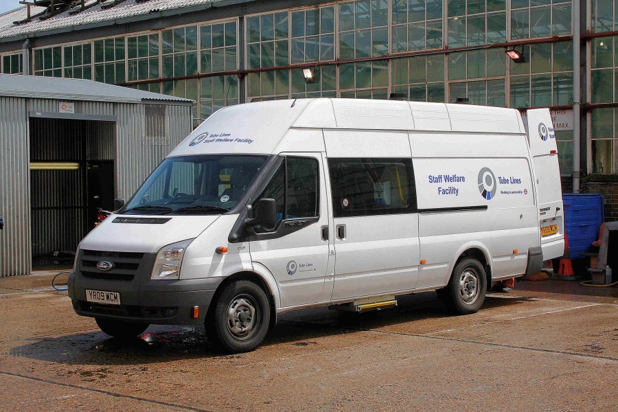 | Details: There are now at least 14 Staff Welfare Facility vans in the leased fleet, all based on jumbo Ford Transits. Most were converted by Clarks of Doncaster and, since mid-2008, have been registered by them, resulting in the appearance of Yx Yorkshire registration series. 6727F is one of a couple to carry all-over white livery and it was photographed at Acton Works on 30th July 2009. | ||||