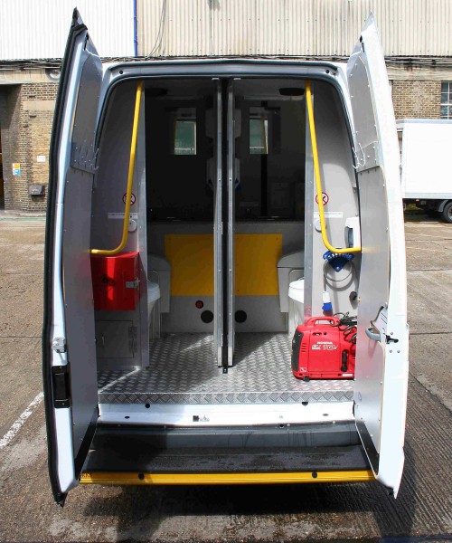 | Details: What sort of facilities do the Staff Welfare Facility vans provide? Well, this picture taken at Acton Works on 30th July 2009 should help answer that! Accessed from the rear are two small toilet compartments, complete with basins and mirrors. The compartment doors look like they are hinged from the centre partition, but there are notices to either side (under the no smoking stickers) that state 'In case of emergency turn here'. Any suggestions? The Clarks badge is just visible on the left of the rear step. There are apparently two types of these vans. Some have two toilets and a small kitchen/rest area in the front, these being the examples with additional side windows. Vans without side windows are presumably those fitted with four toilets. | ||||