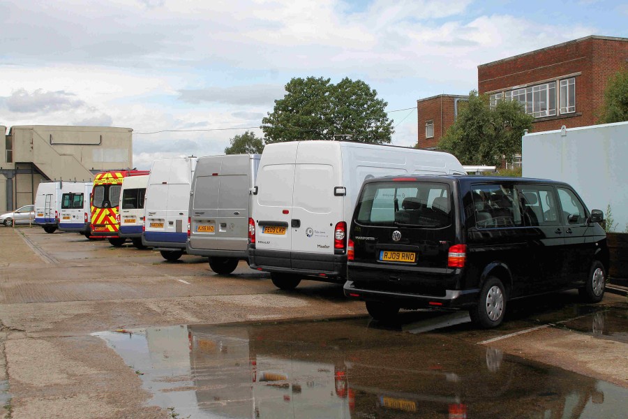| Details: A second line-up in the Acton Works DSM yard on 30th July 2009, this one has a fair variety of vehicle types and liveries. Nearest the camera is un-marked VW Transporter minibus RJ09RNO. Whether this is actually a service vehicle may not be known until we next get an official fleetlist. The next van is white Renault Master 6761 while beyond that is silver Ford Transit 6027F. Note that this vehicle has had its Tube Lines logos stripped off and may be for disposal although it is a few months away from notching up the normal three years service. The London Buses IRU is 6361M from Sycamore House. | |||||