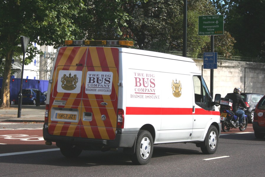 | Details: The Big Bus Company is one of the two major providers of sightseeing tours in central London and has been classed as a bus operator in terms of the database on this website. Having used a couple of select-registered vans in recent years, their current engineering vehicle carries the less memorable mark of YH57JZT. A medium wheelbase, mid-height Ford Transit van, it is of the rare 145 T300 variant, and to GLX standards to boot! This probably accounts for the smart wheeltrims. On 31st August 2009 it was caught heading down Park Lane. Note that the rear chevrons are somewhat 'steeper' than usual, the opposite of Quality Line A6HRR. | |||