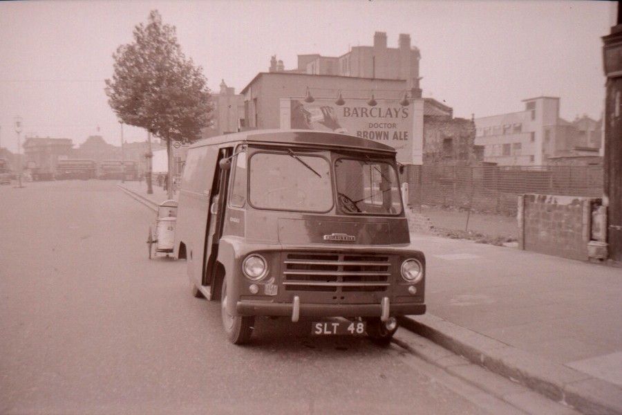| Details: I am not certain of the location of this photograph. The contributor suggests it is in the Kingston area but it does not look familiar, and the numbers on the bus stop cannot be made out. However, the Doric building in the far left distance may be known by someone. The vehicle is 1048AS, an Austin LD van new in 1956 and allocated to Griffith House. If only we had traffic levels like this today! The registration number would also be worth a bit now, and is of course close to the ones carried by the prototype Routemasters. | |||