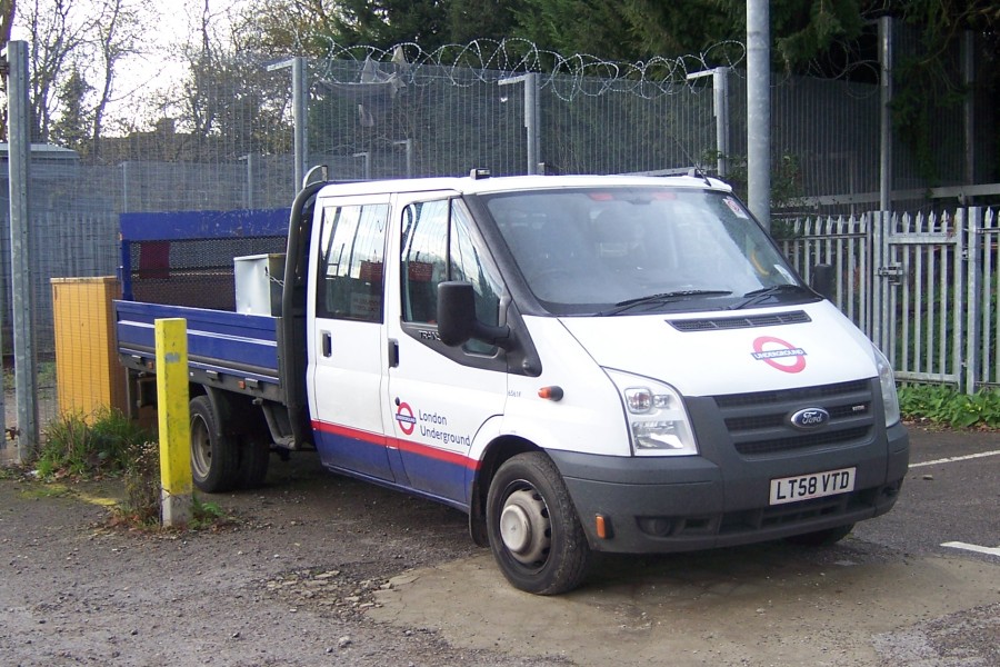 | Details: A Ford Transit that was previously illustrated at Upminster in Metronet livery that is now shown carrying the new Underground livery at Woodford Station, Take 1. Not much I can add to that really, except the observation that the fleetnumber on the offside has been moved down slightly. Presumably all lettering was stripped off during the re-branding. Photographed on 12th December 2009. | |||