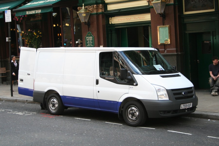 | Details: Ford Transit van 6813F was one of many vehicles delivered through 2009 without company logos. It is based at Griffith House and is expected to gain the new Underground livery shortly. On the 1st of October 2009 it was found parked outside the Railway Tavern at Liverpool Street. Note that the doorway behind the van leads to the engine room! | |||