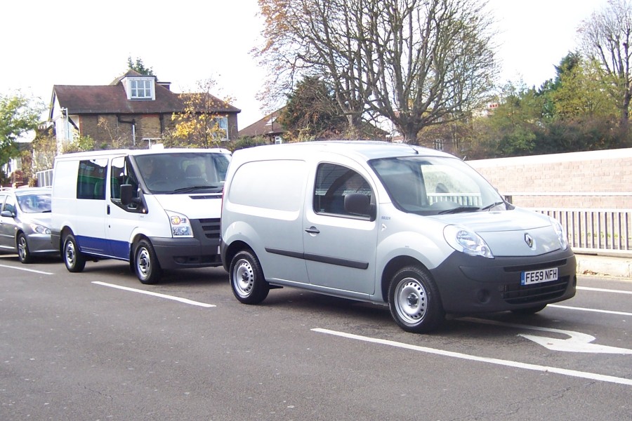 | Details: Frequent contributor Ray Monk has taken some very interesting photos over the years, often achieved through investigation, patience and persistence but sometimes through sheer luck. The latter must have been at play when he took this photo outside Acton Town station on 2nd November 2009, as he managed to catch two brand new vehicles on delivery to Acton. Curiously they are from different manufacturers but perhaps they are supplied by the same dealer. To the front is new-style Renault Kangoo van 6832R in plain silver livery (although listed on the DVLA as grey), while Ford Transit crew van 6812F is right behind. | ||||