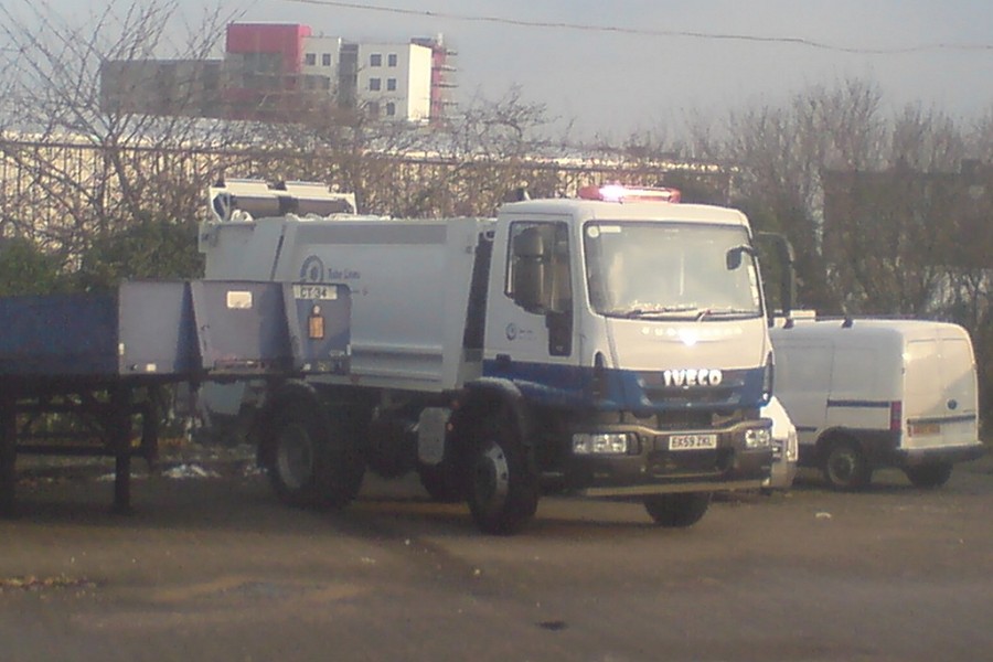 | Details: Two small dustcarts were delivered in December 2009 but have so far been rather camera shy. This photograph, taken on the 18th of that month, is the only one I have so far. The vehicle, seen in the lorry yard at Acton Works, is an Iveco Eurocargo. | ||||