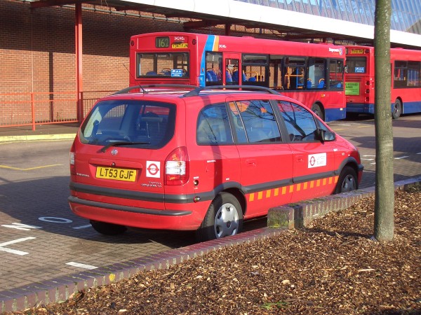 | Details: 5567V (LT53GJF) is a Vauxhall Zafira Estate, photographed at Eltham Bus Station on Saturday 17th January 2004. This batch of cars are Dual Fuel and the alternate LPG filling point can be seen behind the rear wheel. | ||||
