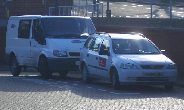 | Details: Photographed in less than ideal lighting at Eltham Bus Station on Saturday 17th January 2004 is East Thames Buses Vauxhall Astra TD Estate Car V968LWW. The vehicle behind is Metrobus 8 (GV53RJZ), a Ford Transit Crew Van. | |||||