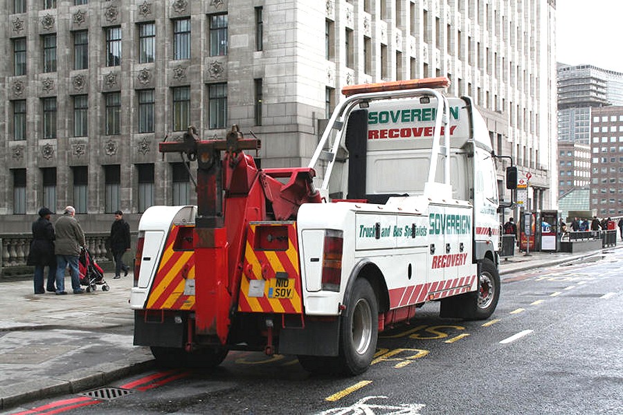 | Details: When Arriva London hybrid bus HW3 crashed into railings at Monument Station on 24th February 2010, Sovereign Recovery were among the various responders. 2-axle DAF CF N10SOV was present, being photographed at the north end of London Bridge, but the job of recovering the bus was left to larger Volvo GJ58NUF. N10SOV has fairly modest bodywork, and a tubular structure to support the light-bar. | |||