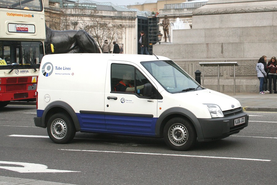 | Details: A fairly ordinary-looking Ford Transit Connect van, 5944F in the Tube Lines fleet is notable for being very rarely seen in daylight. Having joined the fleet in March 2006 it was rather overdue for replacement when photographed rounding Trafalgar Square on 7th April 2010. | |||
