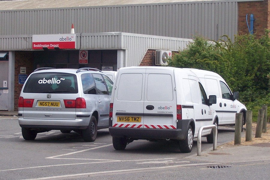 | Details: More Abellio! New fleetnumbers 6101/6102 and 6106/6107 are assigned to four Vauxhall Combo vans acquired in December 2010. All are based at Beddington Cross, where this photo of 6106 (NV56TMZ) and friends was taken on 8th May 2010. Note the minimal chevrons on the rear, and the Dutch Railways logo appended to the fleetnames. The silver car alongside is a Seat Alhambra (a design-sharing variant of the Ford Galaxy). As this also carries the company name, I have added it to the database as a service vehicle. | |||||
