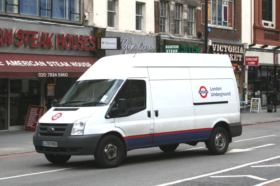 | Details: 6702F is a long-wheelbase, high-roof Mk7 Ford Transit van, delivered in May 2009 in unbranded white/blue livery. It was one of the relatively few vehicles to be kept at Griffith House (most vehicles 'allocated' there are thought to be kept at their drivers homes), although has presumably moved elsewhere since the closure of the yard later in 2009. By March 2010 the van had gained London Underground logos, and a red band above the blue skirt. It was photographed on the 10th of May 2010 passing through Victoria. | |||