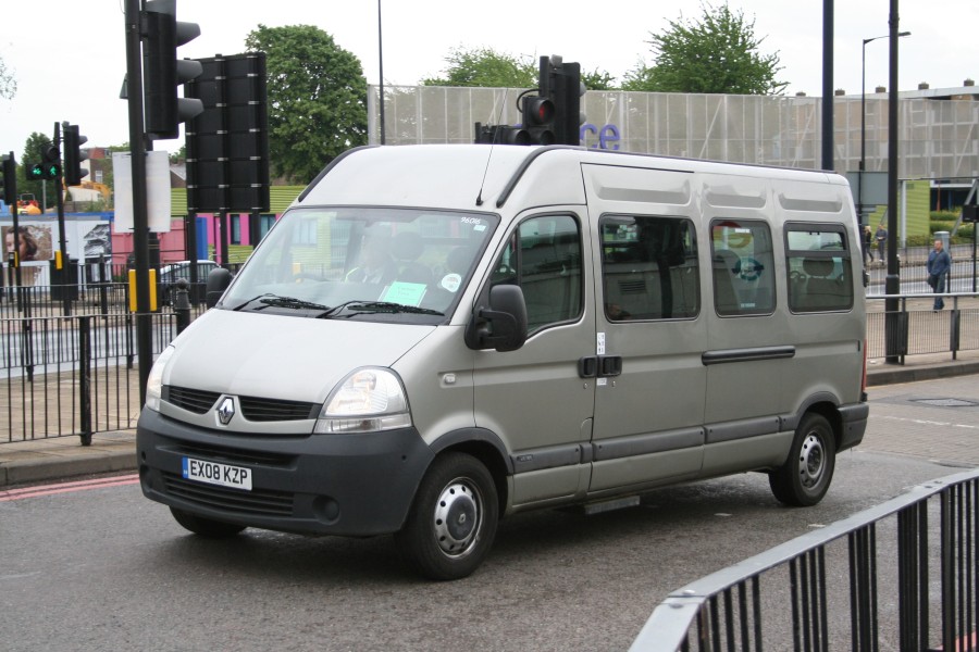 | Details: In 2008 East London took delivery of 11 Renault minibuses for use as crew ferry vehicles, mainly from West Ham garage. 8 were Renault Trafic minibuses while the other 3 were the larger Master model. Two of the latter trio seem to have been transferred to Rainham garage during 2009 but both returned to West Ham in 2010. EX08KZP, carrying the fleetnumber 96016 in the windscreen, was one of these and it was photographed on 29th May 2010 at Canning Town Bus Station. | |||