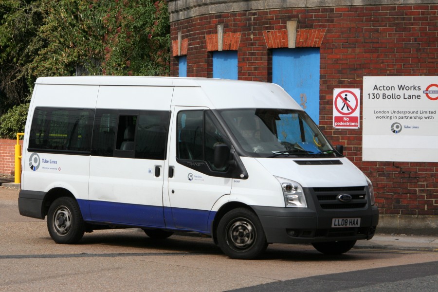 | Details: This Ford Transit minibus seen leaving Acton Works on 30th July 2010 is 6499F in the Tube Lines fleet, based at Finchley Central. Note that the glass in the middle of the offside door window appears to be missing. I had understood that the middle section was an emergency exit, it being standard on all Transit minibuses since the introduction of the Mk6 in 2000. It is however a bit small for this purpose! Any suggestions? | ||||