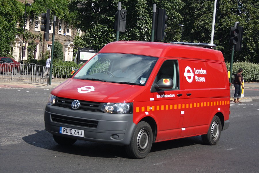 | Details: Fleetnumbers 6897 to 6904 are assigned to a batch of Volkswagen Transporter vans delivered in early summer 2010 for London Buses Infrastructure use (6899VW has yet to be reported but it believed to be RO10ZHB). 6901VW is based at Stratford Bus Station but was caught passing through Edmonton on July 2nd. | |||