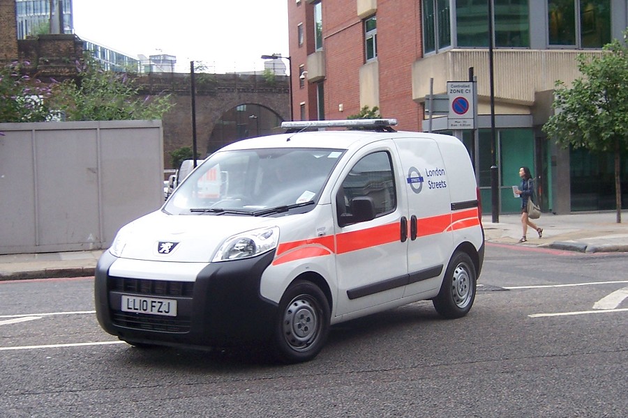 | Details: The intake of vehicles into the leased fleet has slowed over the past year or so. We initially predicted that the first vehicle numbered over 7000 would appear in early 2010. But it's now September and none have been seen yet. Getting us closer is this view of 6980P on Blackfriars Road on 4th August 2010. This is a Peugeot Bipper van for the TfL Streets operation, and had already been photographed by Ray on delivery the month before. The van was evidently coming from the Chancel Street base (which is in the railway arches visible in the background) but it's not yet clear if this (and the three or four similar vans) is based there. It is slightly curious that while cars allocated to the TfL fleet are not given fleetnumbers, vans are. This policy may be spreading as the recent Toyota Priuses for London Buses have yet to be numbered. | |||