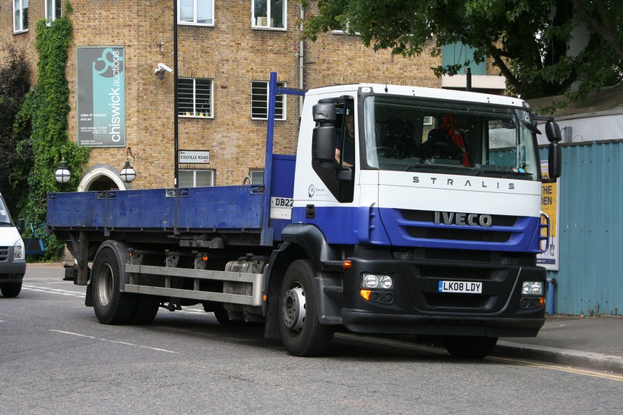 | Details: During a stint on Bollo Lane on 30th July 2010, Malcolm photographed loads of service vehicles. His photographs are of excellent quality so I am taking the opportunity to show second views of some of the larger vehicles. First up is Iveco Stralis demountable LK08LDY. The dropside body is DB22, built by Feltham Coachworks and one of three longer bodies that can only be mounted on this lorry and sister LK08LDV. | |||||