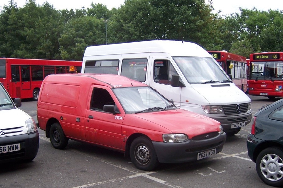 | Details: Travel London assigned fleetnumbers to its service vehicle fleet in late 2007, but the physical application to vehicles was very rare. Taken to the other extreme was Ford Escort van Y637WGO, with at least two sets. The large Travel London fleetnames originally worn have now been removed. On 1st August 2010 it was parked alongside Mercedes minibus T573FFC at Fulwell garage. | |||||