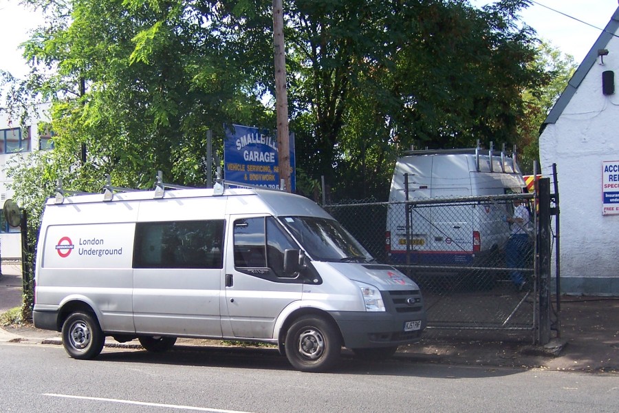 | Details: A full house at Smallbills. This garage, conveniently positioned near to Acton Works on Bollo Lane, does seem to get a lot of work fixing up service vehicles. On the 20th September 2010, Ford Transit crew van 6314F was parked outside. Normally based at Leyton Westdown Road, it is one of only three crew vans to carry the silver livery. Inside are high-roof crew van 6583F and one other unidentified vehicle. | |||