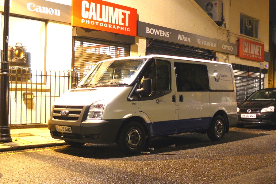 | Details: The short-wheelbase, low-roof Transit crew van is almost a standard vehicle of late, seemingly having taken over from the long-wheelbase, mid-height variant. London Underground (and Metronet before them) operates many but Tube Lines also employ about a dozen, mostly in the lifts and escalators section. Their 6785F was found parked near the old Euston tube station building on the night of 29th September 2010. Shortly after taking this photo I was stopped by the police who understandably wanted to know why I was taking photographs at 3am in such a 'sensitive' area (ie near a major station). After some lengthy explanations and a radio check I was allowed on my way. | |||