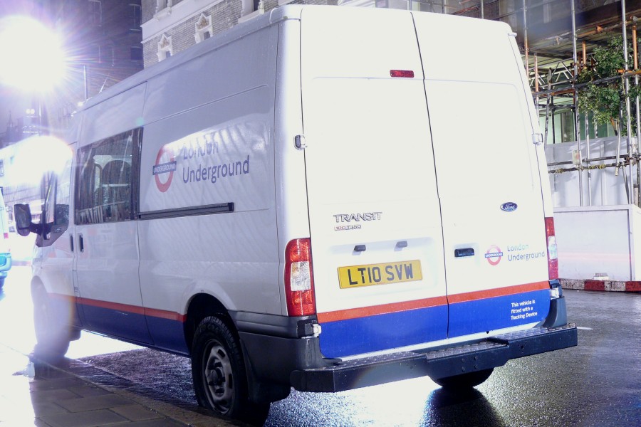 | Details: Another slightly over-exposed (but quite stylish??) shot from the night of 29th September 2010, this time of 6894F parked on Seymour Place. This Ford Transit is a long-wheelbase, mid-height crew van, carrying the standard London Underground livery. | |||