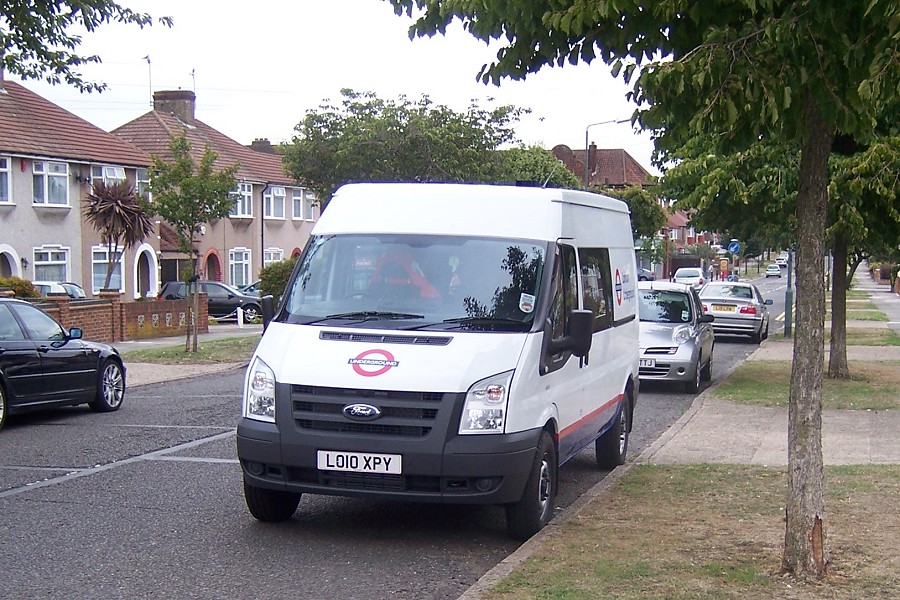 | Details: Spot the difference 2. Mid-height Transit crew van on a residential street. 6930F was photographed on Little Heath Road in Bexleyheath on 20th August 2010. All the numbers reported between 6907 and 6939 have been on Transit crew vans similar to this one. The batch appears to be divided into two, the lower numbered examples having roof-racks. It is believed that these are replacing earlier Transit crew vans, while the higher numbered (rack-less) examples are to replace the batch of 20 Volkswagen Transporter vans leased in 2007 (6169VW to 6188VW). All of the new vans appear to work out of Acton Works. | |||