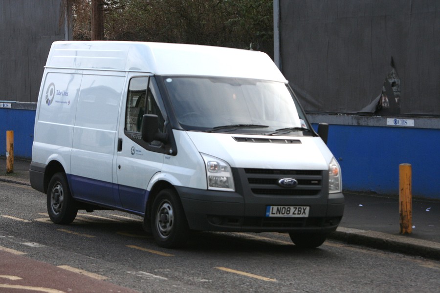| Details: 6437F is a short-wheelbase Ford Transit van on which the mid-height bodywork is rare. With Tube Lines logos, the van was photographed on Bollo Lane on 25th January 2011. | |||