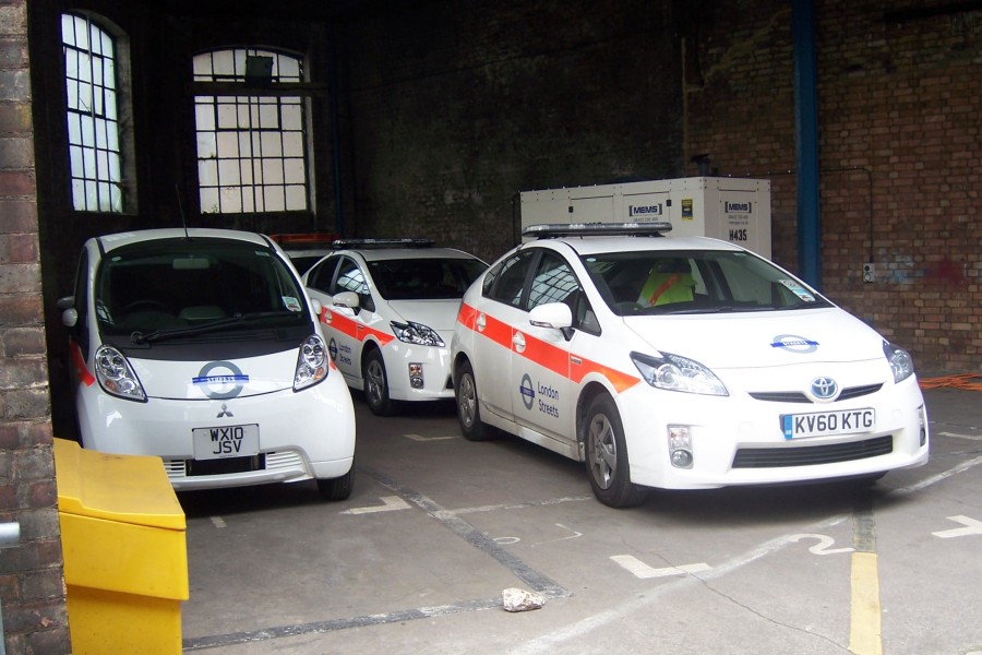 | Details: The TfL Streets operation received at least six Toyota Priuses in early 2011, mainly to replace similar cars new in 2006. These are often parked in the front part of the base at Chancel Street, Southwark, as seen here on 12th March 2011. Also visible are one of the older Priuses (at the back, with an orange light-bar), one of the four Mitsubishi i-MiEV 'electric bug' cars, and the mobile generator that has recently been installed here. The latter is thought to be in connection with charging the electric cars. | ||||
